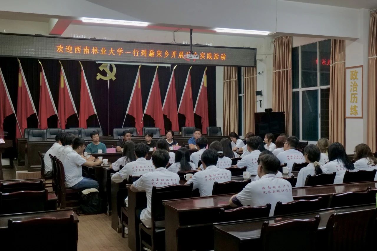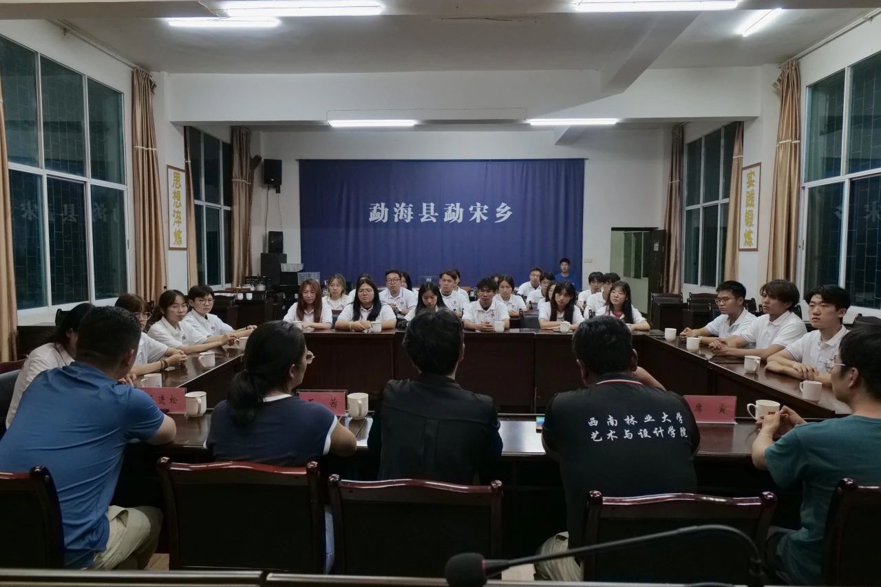 7月29日,太阳成集团tyc122ccvip“藝树石榴红”实践团赴西双版纳傣族自治州勐海县勐宋乡开展社会实践活动,并在勐宋乡人民政府召开座谈会。勐宋乡副乡长石茜、团委书记沈菲菲,艺术与设计公司党委副书记李浩、团委书记王进松、环境设计系教师席寅、视觉传达系教师陈露,实践团30名成员参加会议。会议由石茜主持。