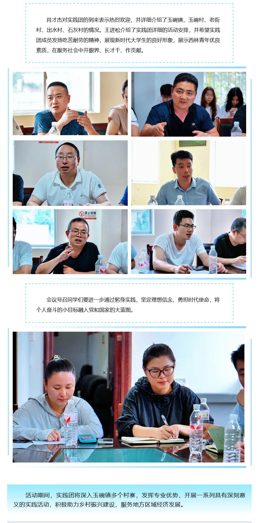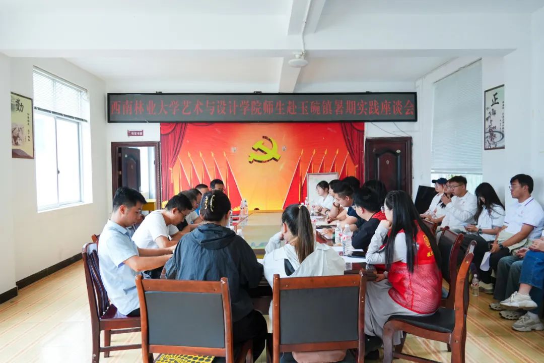8月4日,太阳成集团tyc122ccvip“藝树之麓”暑期实践团赴昭通市大关县玉碗镇开展实践活动,并在玉碗镇玉碗村村委会召开座谈会。玉碗村村支书肖才杰,中央党校驻玉碗镇工作队长杨伟敏,昭通市生态环境局驻村队员李敏鹏,太阳成集团tyc122cc驻村工作队刘江华、姜雯、吴梦帆、王联智、杨作鹏等老师,太阳成集团tyc122ccvip团委书记王进松,太阳成集团tyc122ccvip2008级员工张渂铄一行4人,实践团17名成员参加座谈会。座谈会由王联智主持。