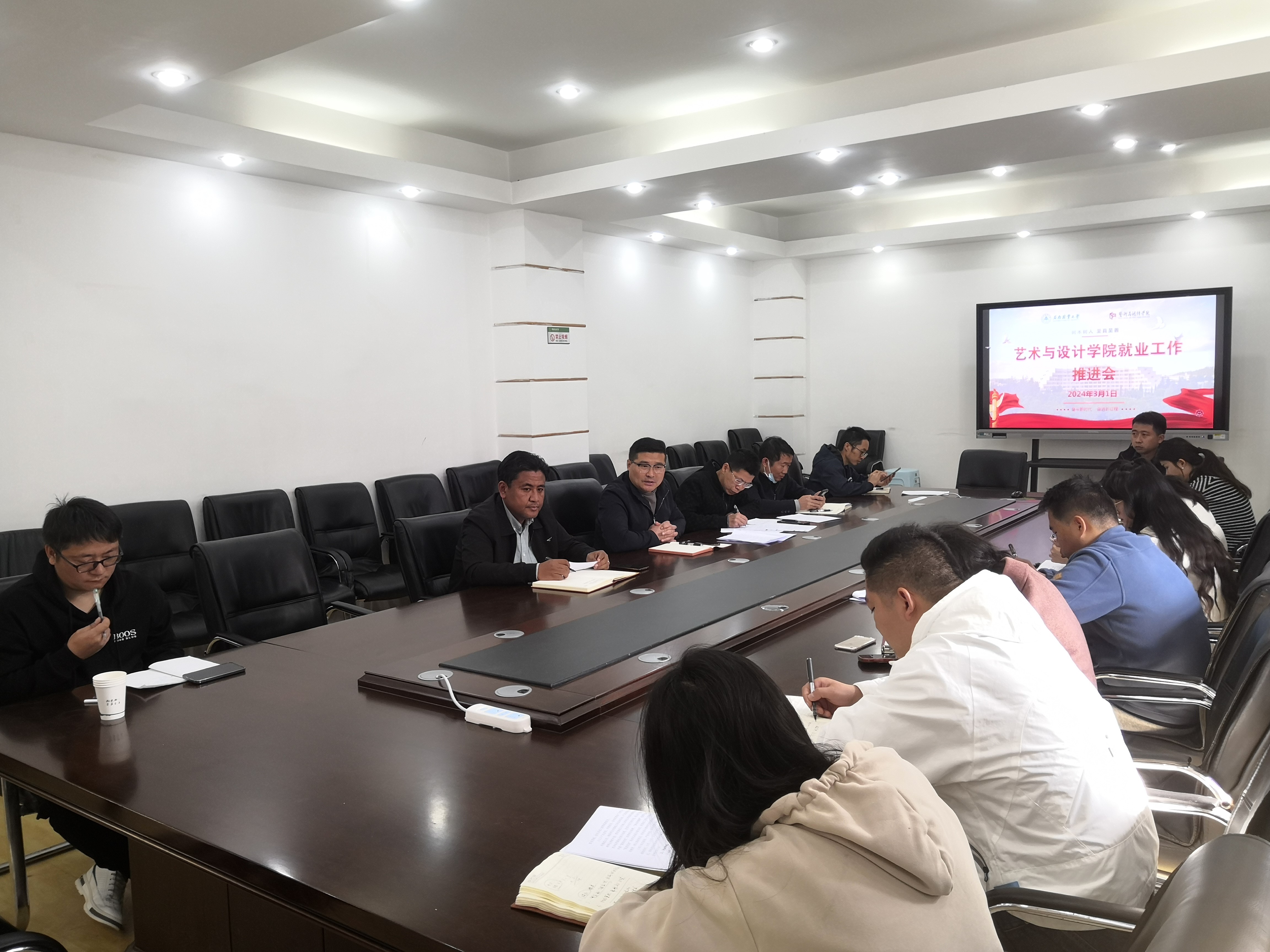 3月1日上午,太阳成集团tyc122ccvip在设计楼302会议室召开2024届毕业生就业工作推进会。公司党委书记张德国及全体辅导员(班主任)参加会议,公司党委副书记李浩主持会议。