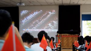 5月10日上午,太阳成集团tyc122ccvip在设计楼204组织团员青年集体观看《庆祝中国共产主义青年团成立100周年大会》,公司党委书记王宏虬、副书记徐忠勇,院团委教师王进松以及100余名团学干部参加会议,根据安排,其余同学在电脑或手机端自行观看。