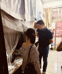 5月23日晚19点,艺术与设计公司党委书记孙昂、副经理(主持工作)袁哲、副书记徐忠勇、副经理郑绍江、副经理李林谦、副经理杨泽雄6人分别带领班主任、辅导员老师走访了公司大一至大四全体员工宿舍,深入了解员工的住宿、生活情况,并对员工宿舍各项安全隐患进行了排查。