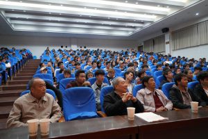 为迎接办学80周年建校60周年校庆活动增添正能量,营造良好的校园文化建设氛围,加强老员工思想教育工作,促进老员工成长成才、全面发展。结合关工委活动计划,2018年11月12日,公司老同志宣讲团在图书馆大报告厅为公司新生进行校史校情宣讲活动。活动特邀德高望重的杨比伦、盛世法、王红兵、潘涌智四位老教师担当主讲嘉宾,四位嘉宾分别以《西林校史一二三》、《学为人师行为师范》、《追寻西林精神 满怀绿色的希望 创造明天的辉煌》和《使命 二十载治漠不了情》为主题进行讲课。公司党委副书记徐忠勇主持此次讲座,设计公司2018级新生班主任及400多名新生参加了本次报告会。