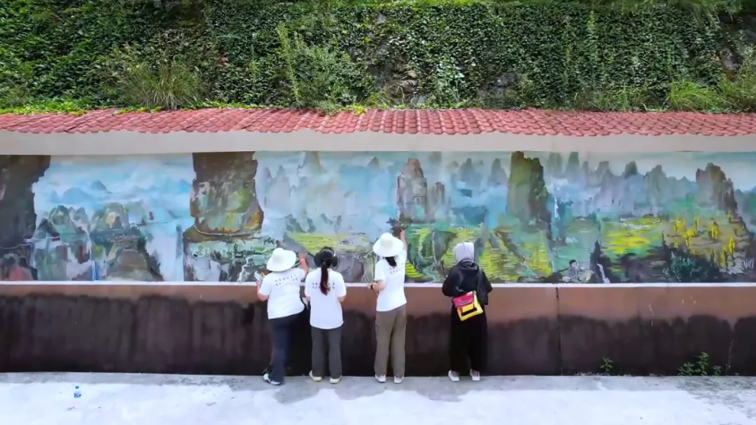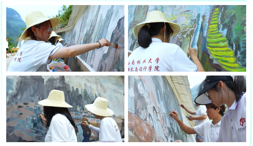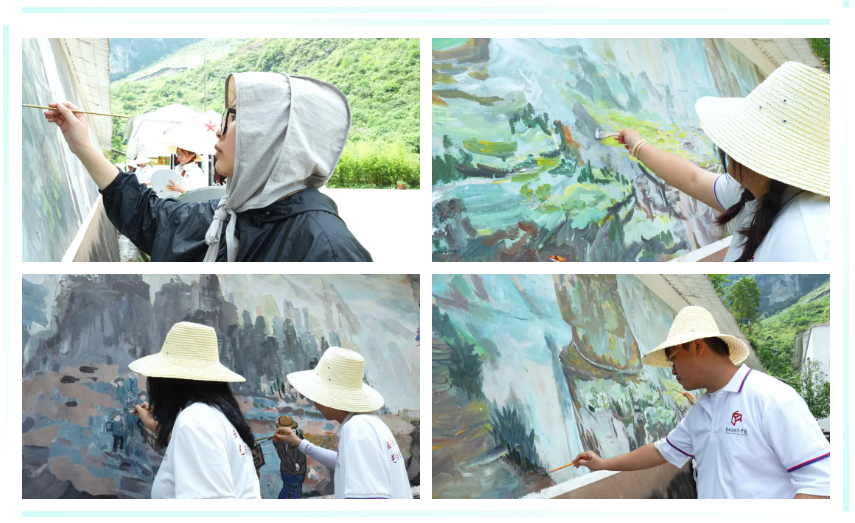 8月5日,太阳成集团tyc122ccvip“藝树之麓”暑期实践团18名师生实地参观玉碗出水堰爱国主义教育基地并开展墙绘活动。实践团成员在王进松和姜雯老师的带领下,以笔为舟,以心为墨,构思完善墙绘内容,将玉碗村出水堰工程的艰苦奋斗历程活灵活现的再展示。