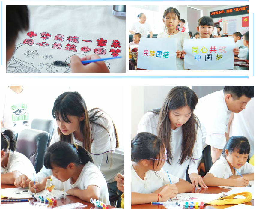 8月5日,“很高兴认识你”乡村教育第8期活动在玉碗镇老街村开展,实践团师生和员工共同向参与活动的孩子们捐赠了文具用品。并现场和孩子们亲密互动,大手拉着小手,共同围绕“民族团结”“乡村教育”等主题作画,给大家带来一次全新的艺术之旅,愿爱如阳光般照亮孩子们的成长之路,共同绘制中华民族团结的绚丽篇章。