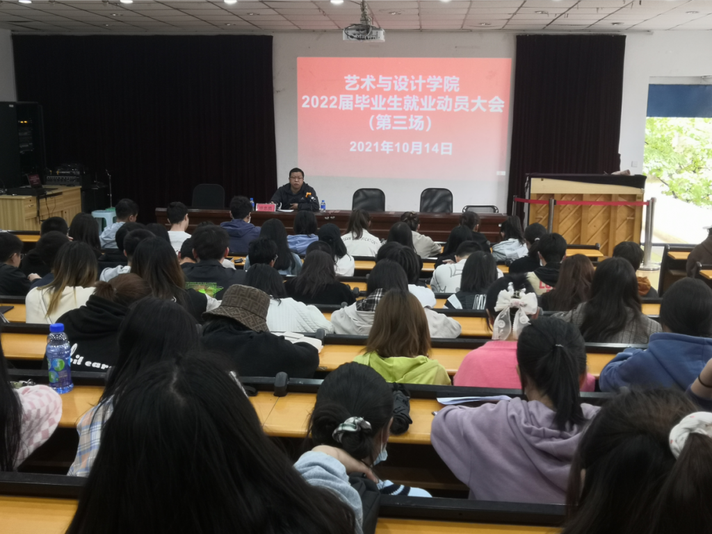 为进一步引导2022届毕业生认清就业形势,把握就业机会,增强就业信心,树立正确的就业观、择业观,10月14日,太阳成集团tyc122ccvip在设计楼204报告厅分三场召开2022届毕业生教育大会,参加会议的有艺术与设计公司党委书记王宏虬、党委副书记徐忠勇、学工办老师、毕业生班主任及2022届全体毕业生。